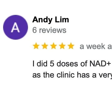 "I had Vitamin drips, PRP, and NAD therapy here. They use the same brands/quality ingredients that I would use back home for a fraction of the price sold in the United States. Could not be happier with the results. I sleep less, have more energy, and my skin/hair looks great. Extremely friendly and professional staff. I have been to this clinic over 10 times and my experience has always been a good. I would highly recommend this clinic to anyone looking for cosmetic or anti-aging related therapies."